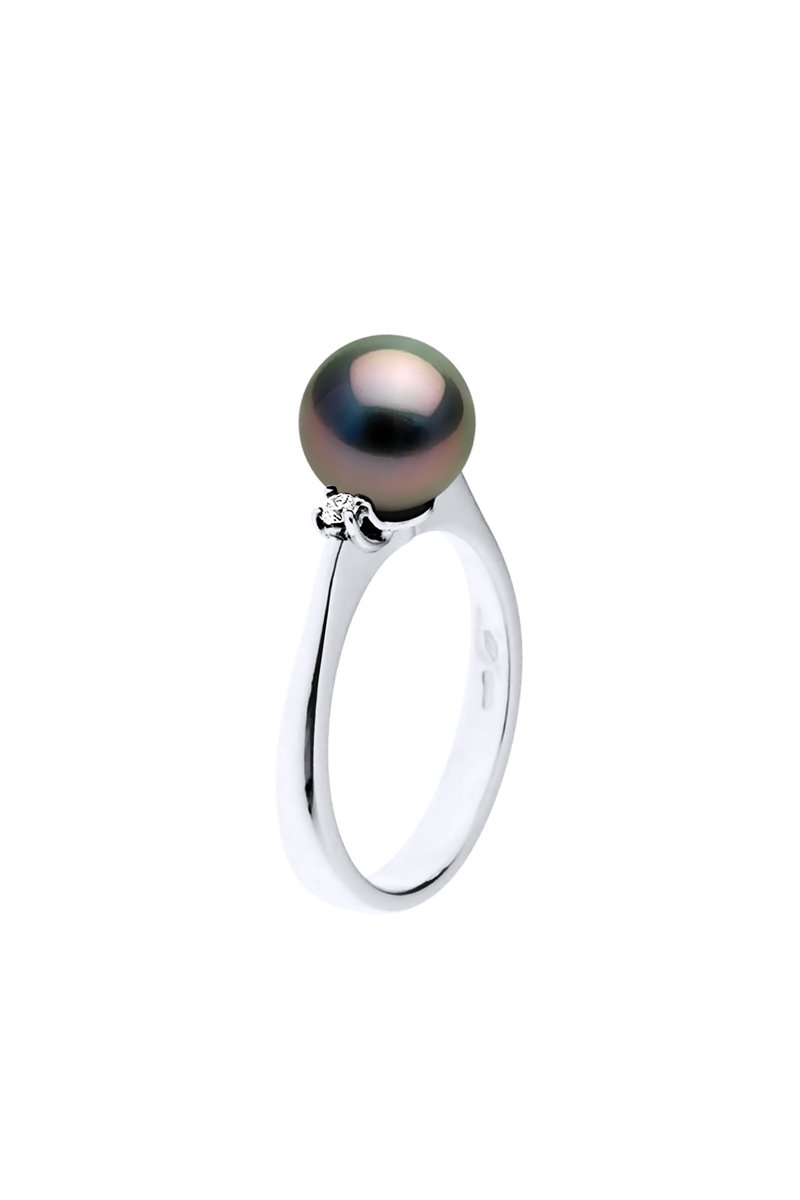 Anello - Oro bianco, diamanti e perla coltivata di Tahiti