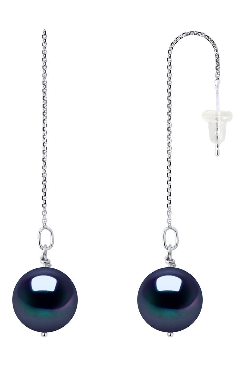 Orecchini pendenti in oro bianco con perla coltivata d’acqua dolce.