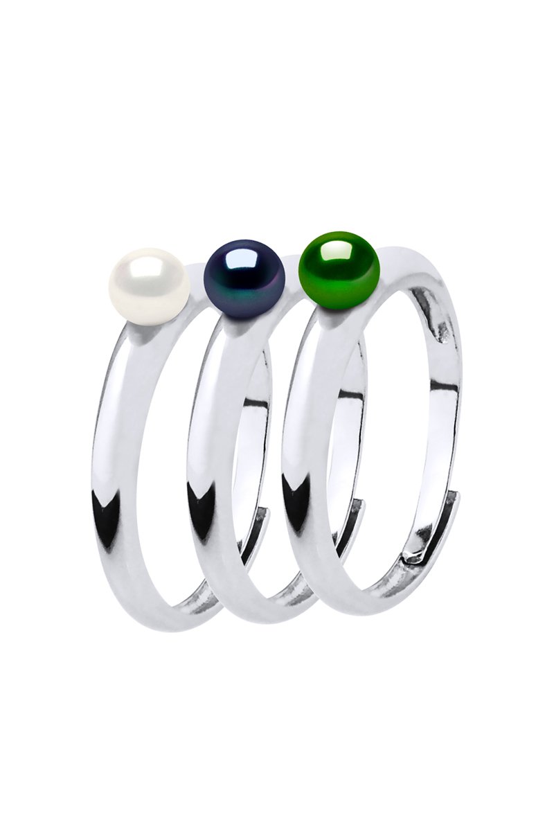 3 anelli - Argento e perle coltivate d’acqua dolce