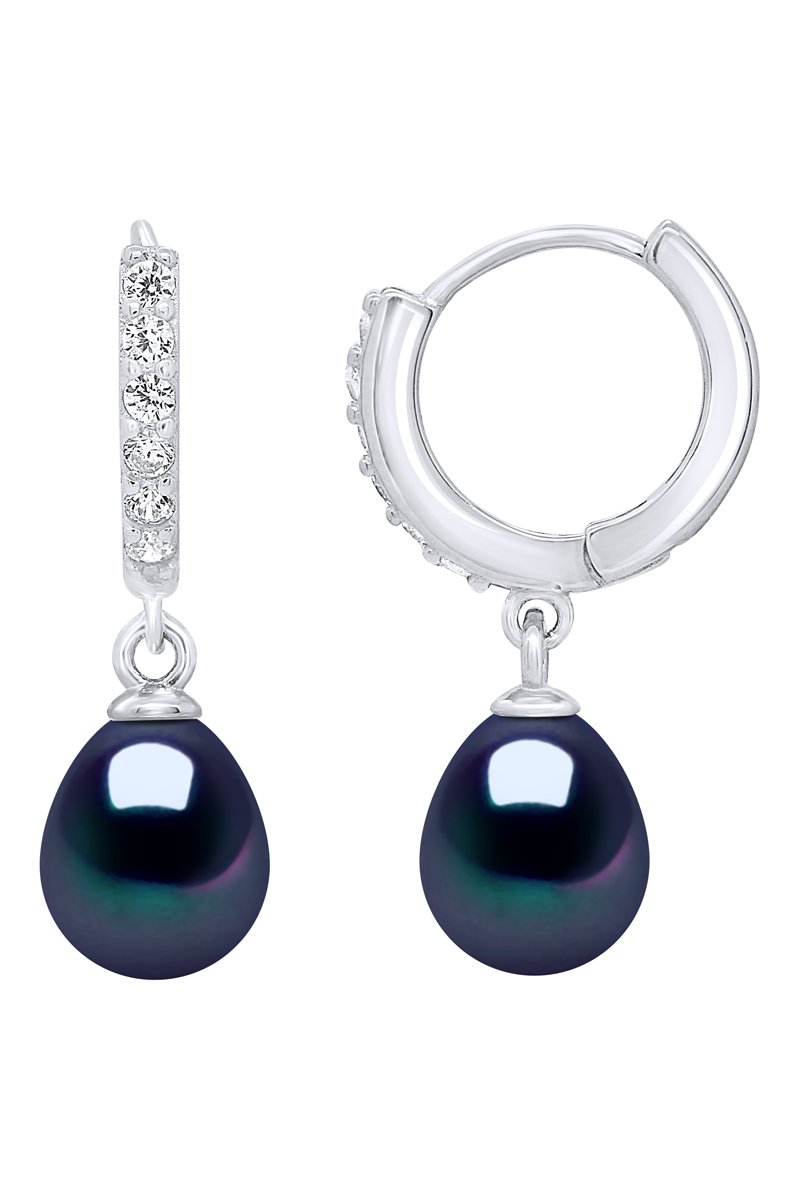 Orecchini a cerchio in argento con una perla coltivata d’acqua dolce e ossidi di zircone.