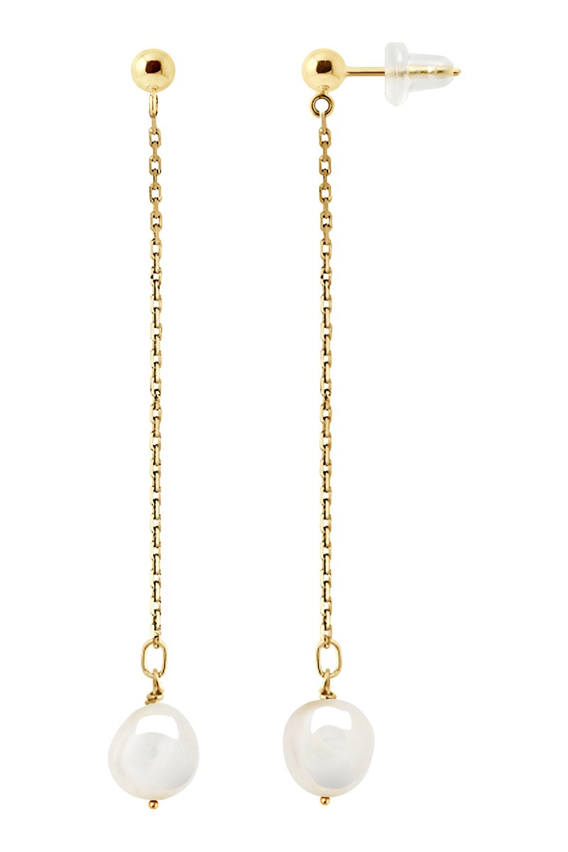 Orecchini pendenti in oro giallo con una perla coltivata d’acqua dolce.