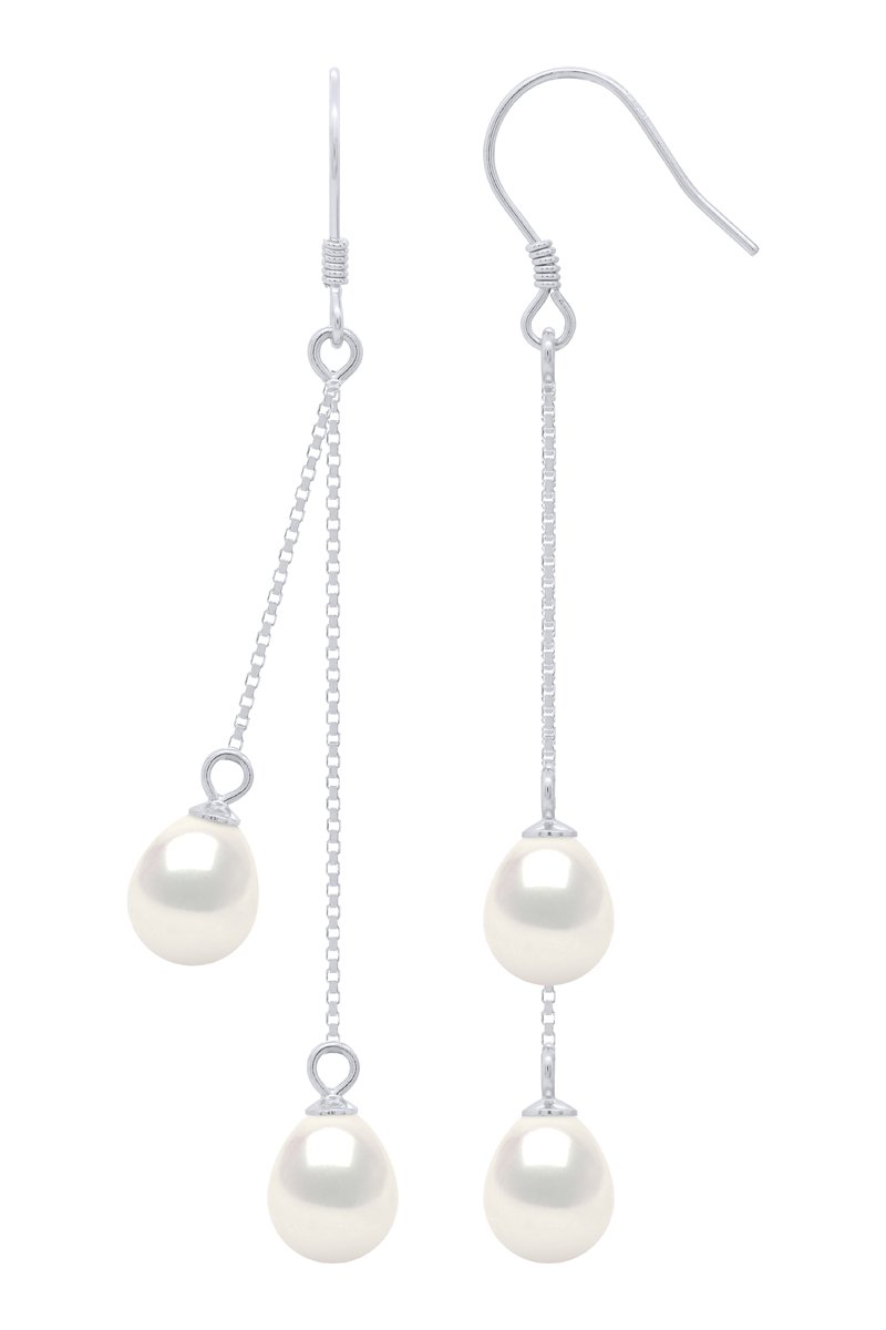 Orecchini pendenti in argento con perle coltivate d’acqua dolce.