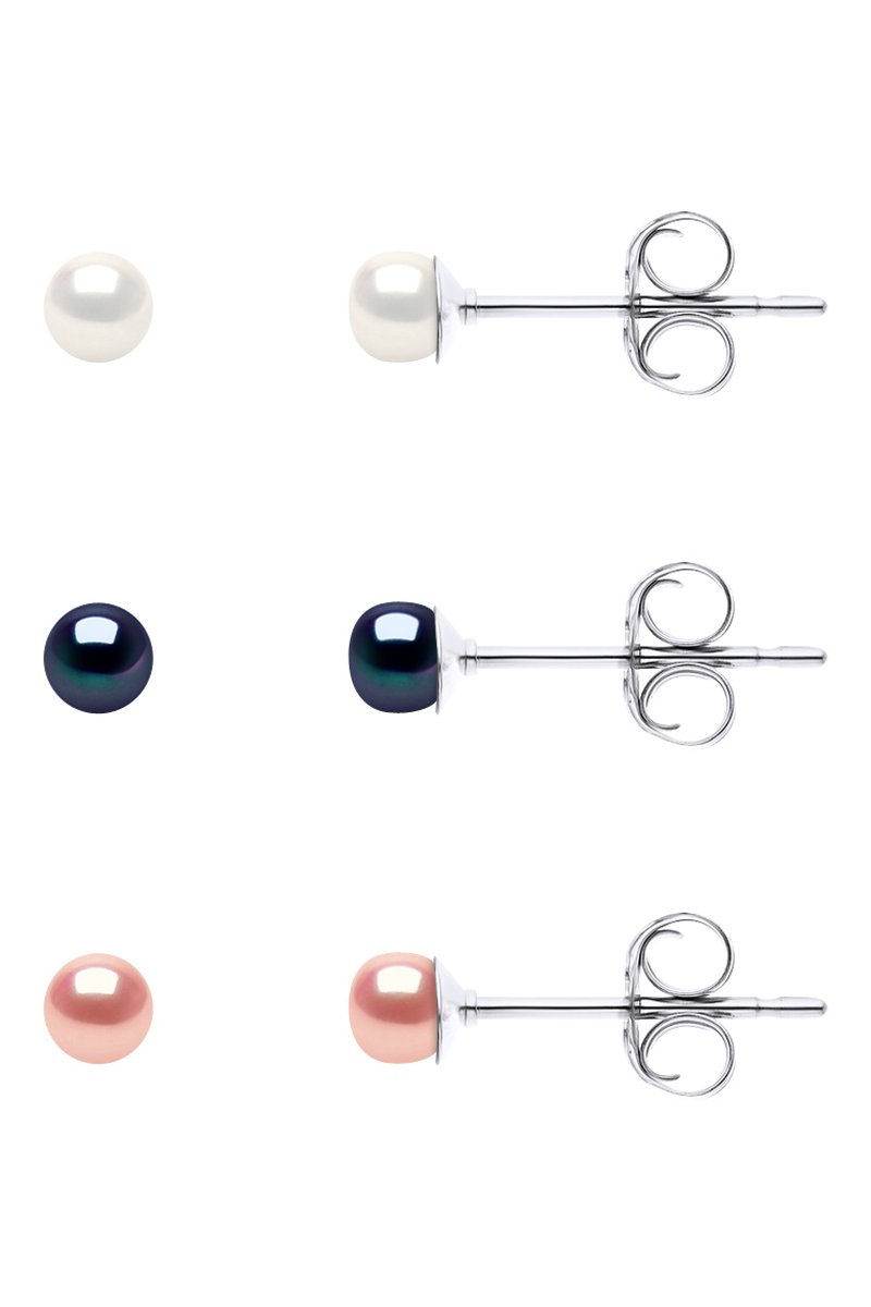 3 orecchini in argento con una perla coltivata d’acqua dolce.