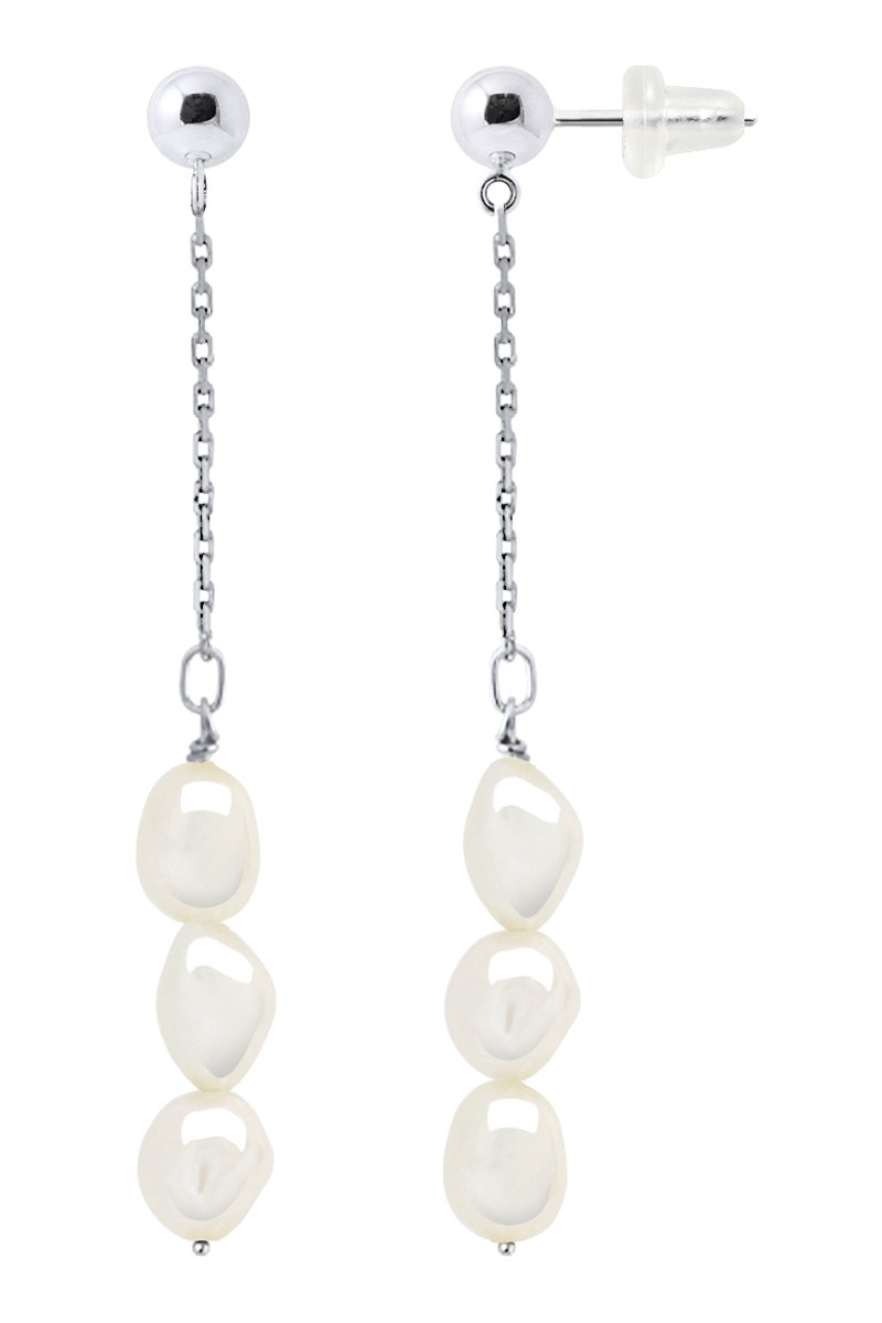 Orecchini pendenti in argento con perle coltivate d’acqua dolce.
