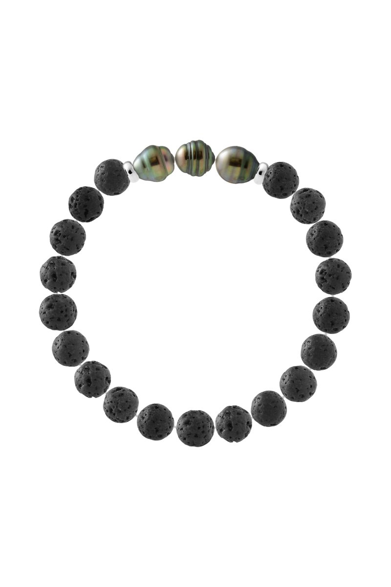 Bracciale - Argento, pietre di lava naturale e perle coltivate di Tahiti