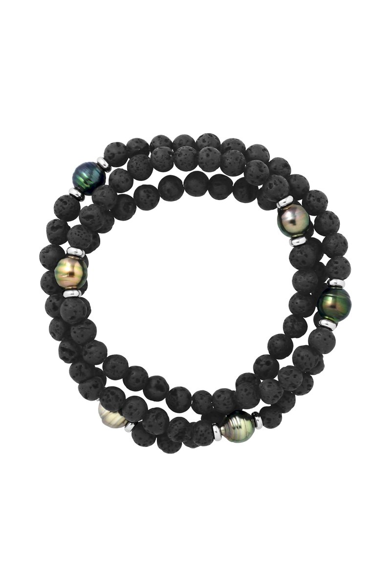 Bracciale - Pietre di lava naturale, perla coltivata di Tahiti e argento