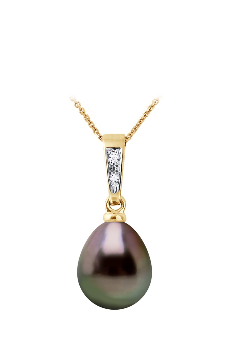 Ciondolo - Oro giallo, diamanti e perla coltivata di Tahiti