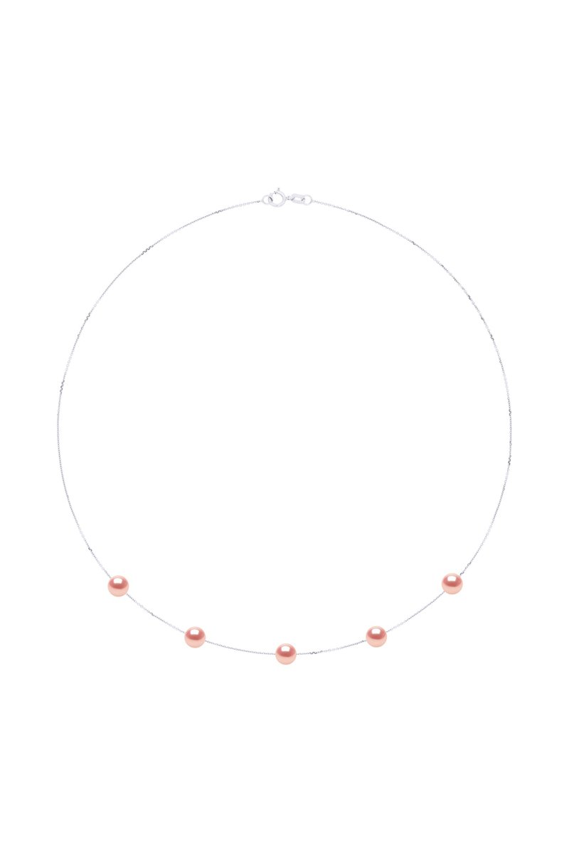 Collana in argento con 5 perle coltivate d’acqua dolce.