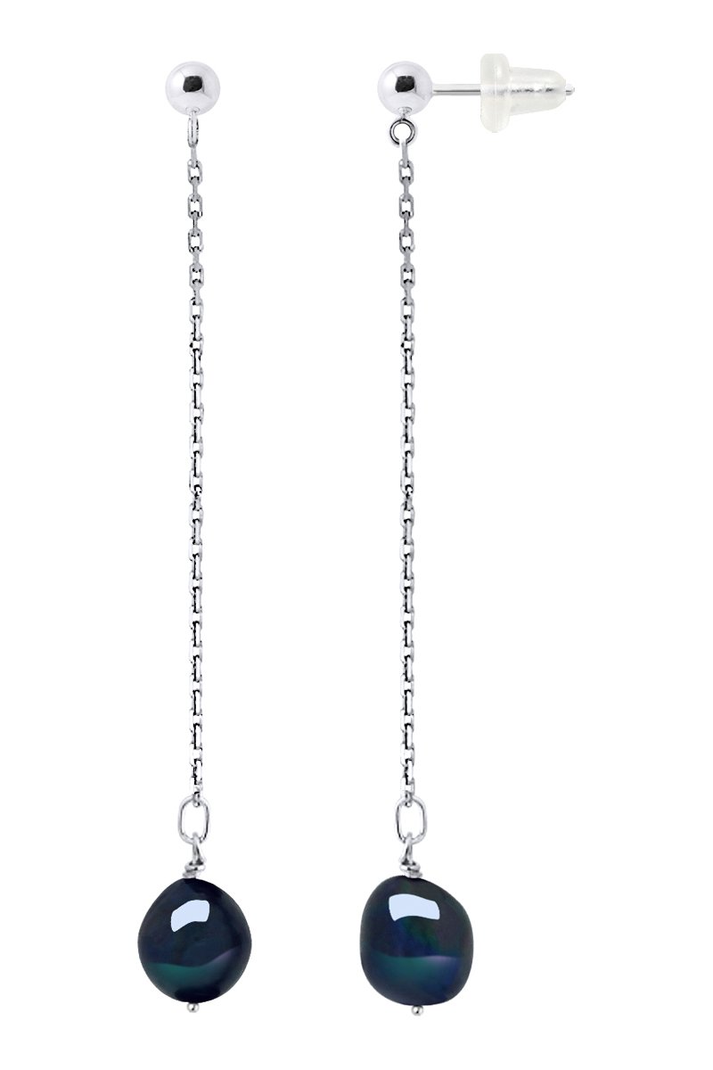 Orecchini pendenti in oro bianco con una perla coltivata d’acqua dolce.