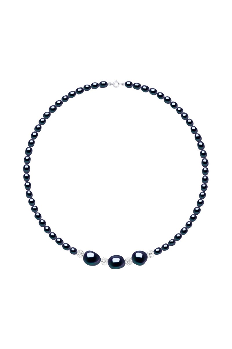 Collana in argento e perle coltivate d’acqua dolce con cristalli.