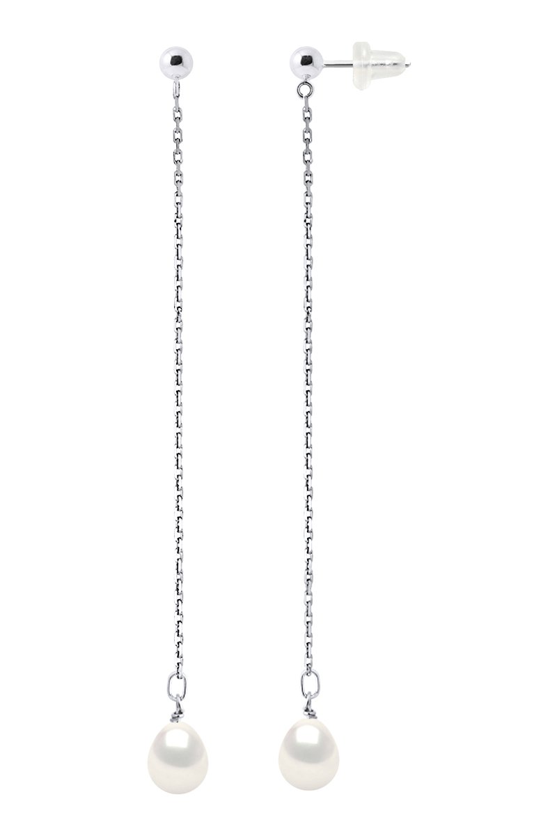 Orecchini pendenti in oro bianco con una perla coltivata d’acqua dolce.