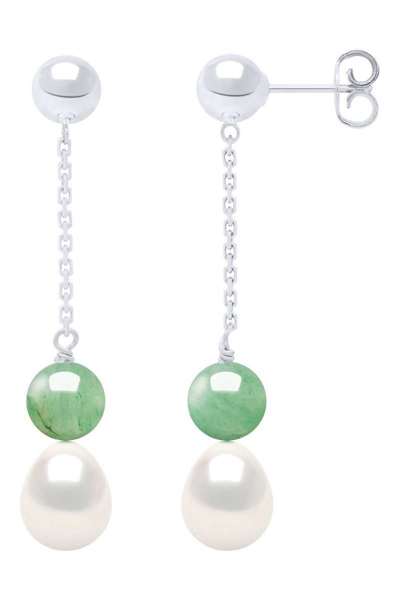Orecchini - Argento, perle coltivate d’acqua dolce e avventurine