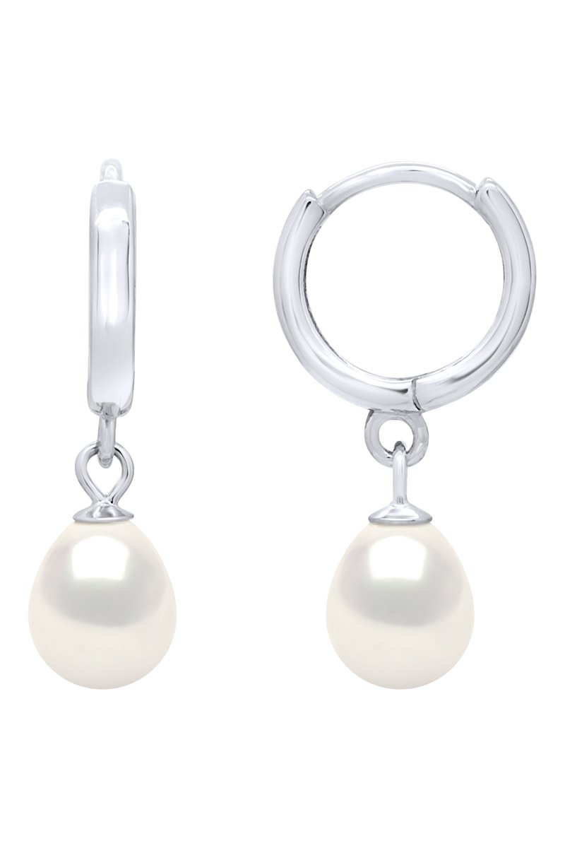 Orecchini a cerchio in argento con una perla coltivata d’acqua dolce.