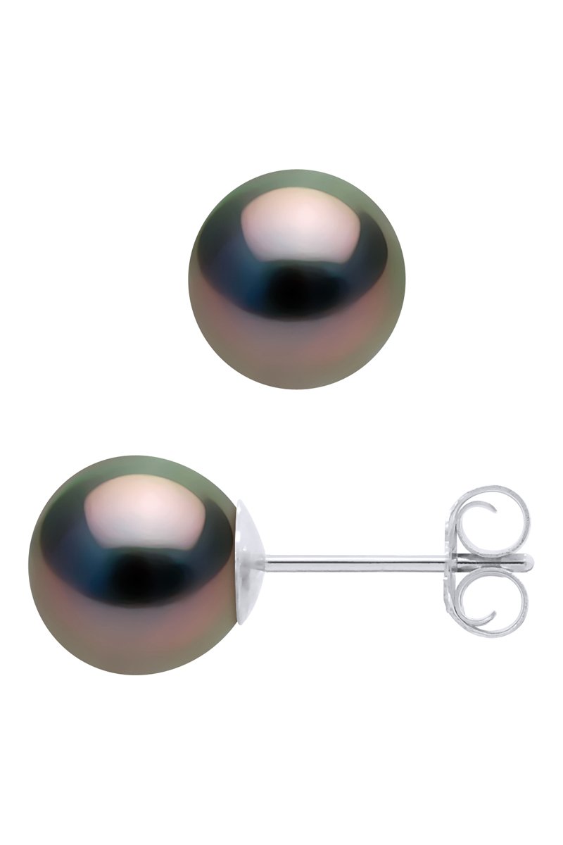 Orecchini in oro bianco con perla coltivata di Tahiti.