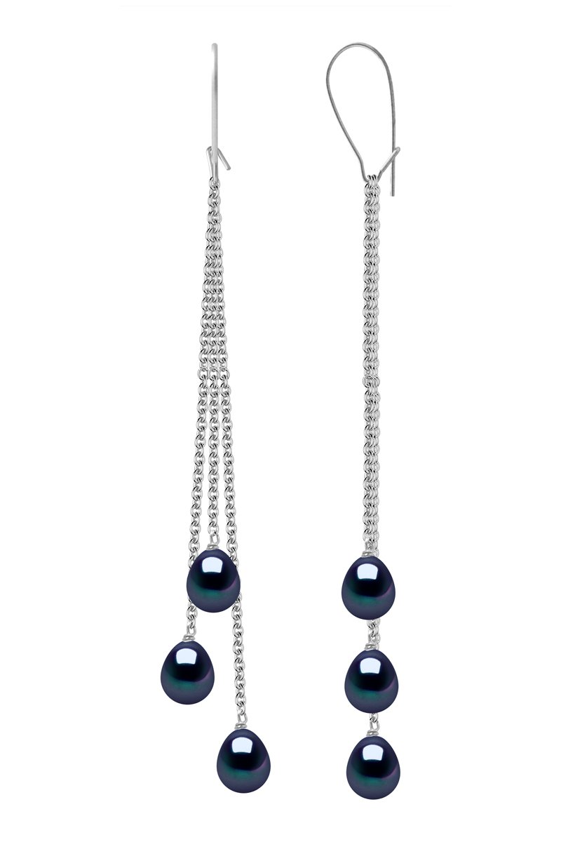 Orecchini pendenti in oro bianco con perle coltivate d’acqua dolce.