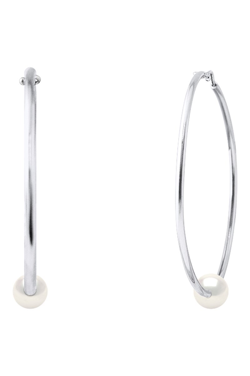 Orecchini a cerchio in argento con una perla coltivata d’acqua dolce.