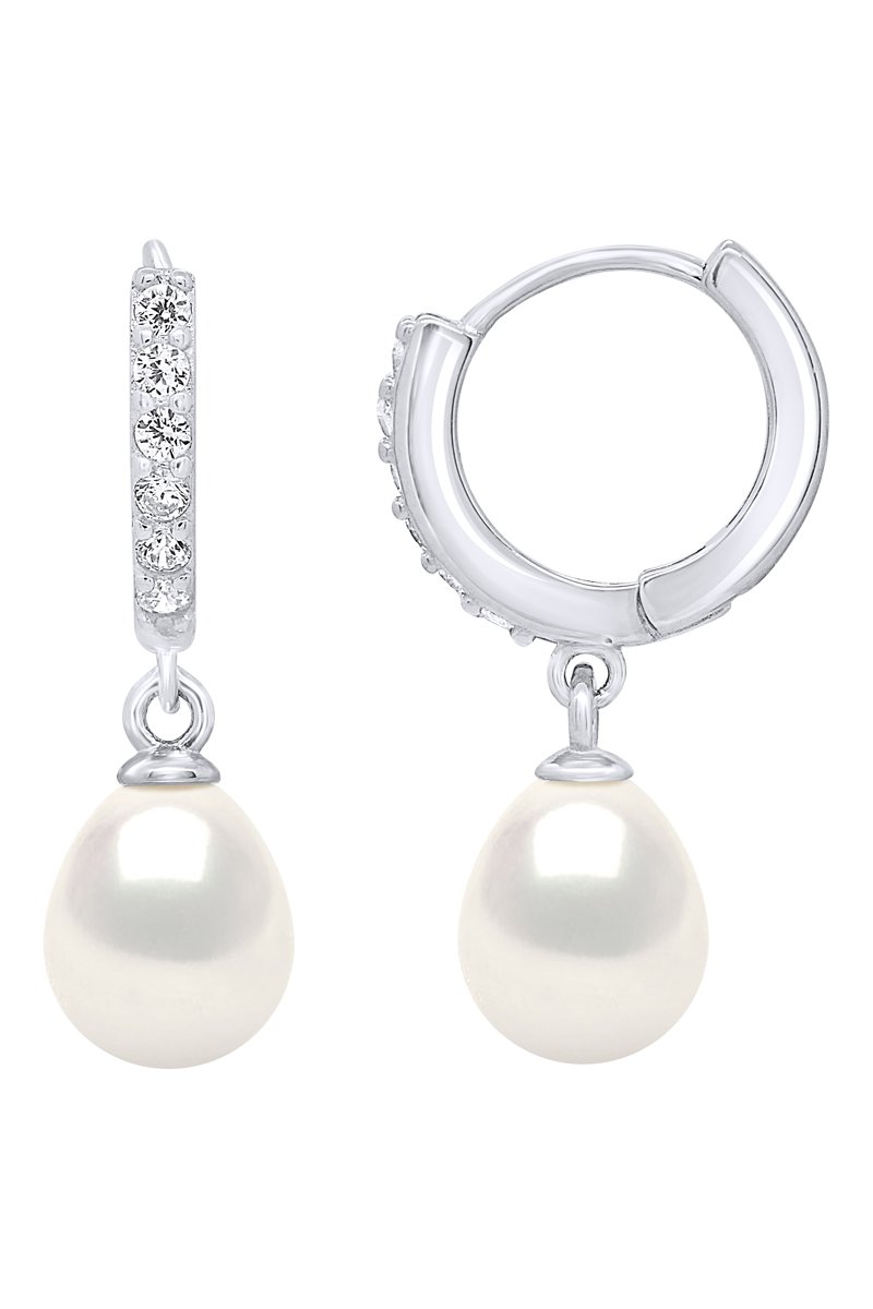 Orecchini a cerchio in argento con una perla coltivata d’acqua dolce e zirconi.