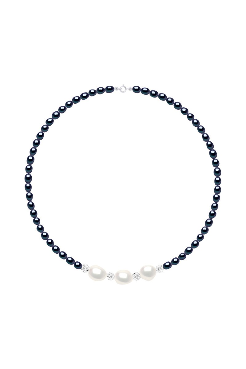 Collana in argento e perle coltivate d’acqua dolce con cristalli.