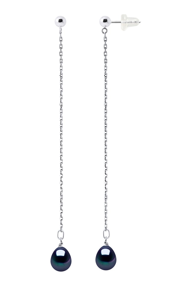 Orecchini pendenti in oro bianco con una perla coltivata d’acqua dolce.