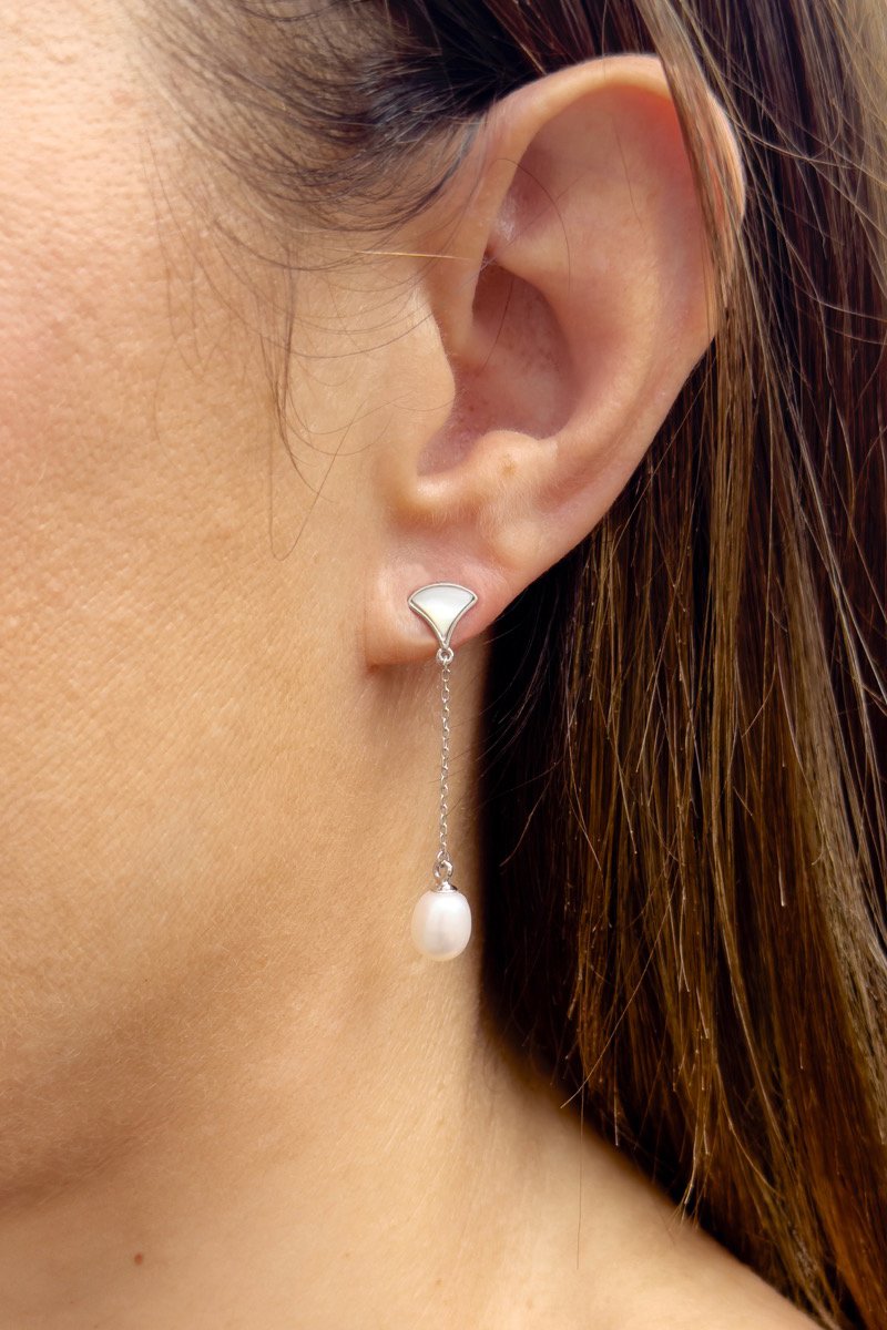 Orecchini pendenti in argento con 2 perle coltivate d’acqua dolce.