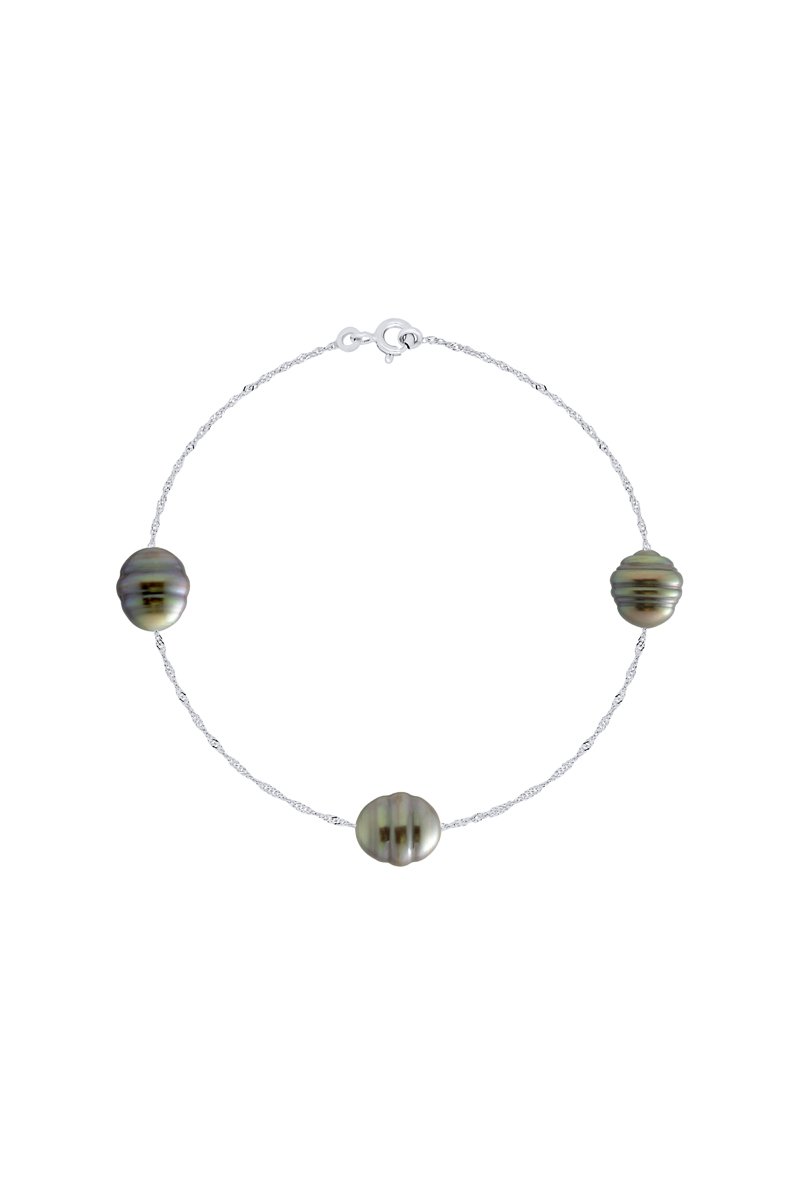 Bracciale in oro bianco con 3 perle coltivate di Tahiti.