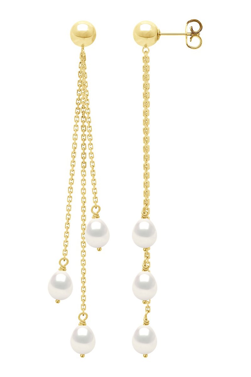 Orecchini in argento placcato oro giallo con 3 perle coltivate d’acqua dolce.