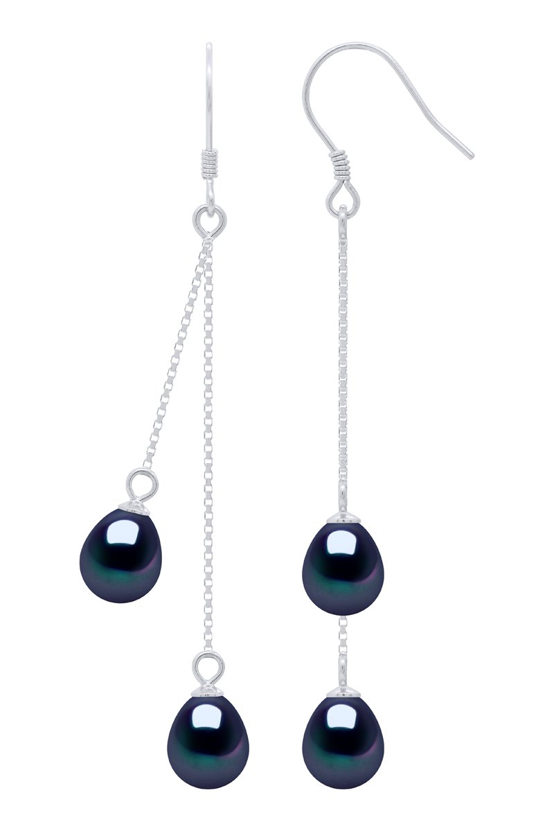 Orecchini pendenti in argento con perle coltivate d’acqua dolce.