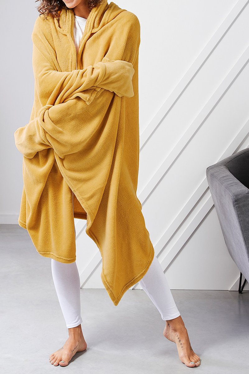 Plaid con cappuccio - Ocra - 115 x 165 cm