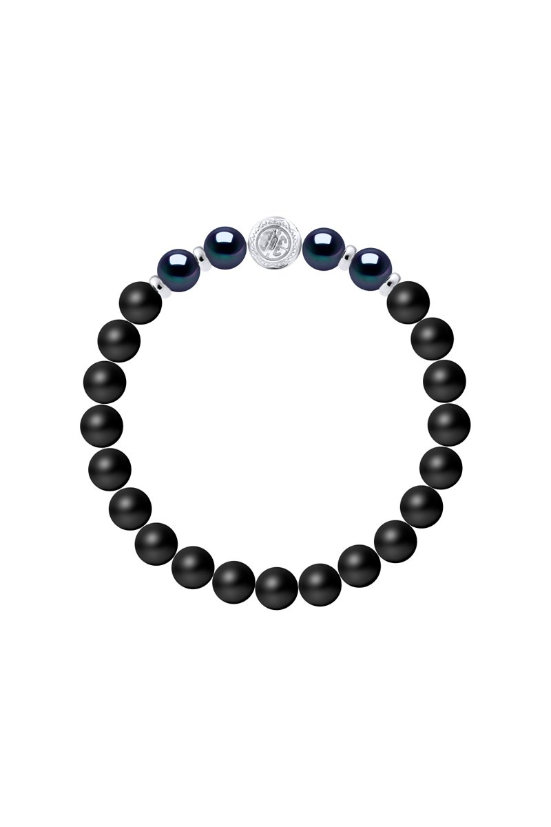 Bracciale elastico in agate e argento con 4 perle coltivate d’acqua dolce.