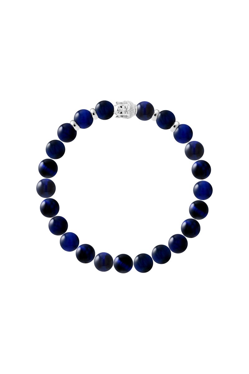 Bracciale elastico con occhi di tigre e argento.