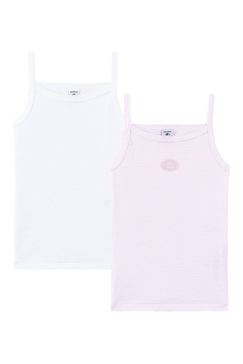 2 canotte di cui 1 con motivi a righe con inserto e logo sul davanti.