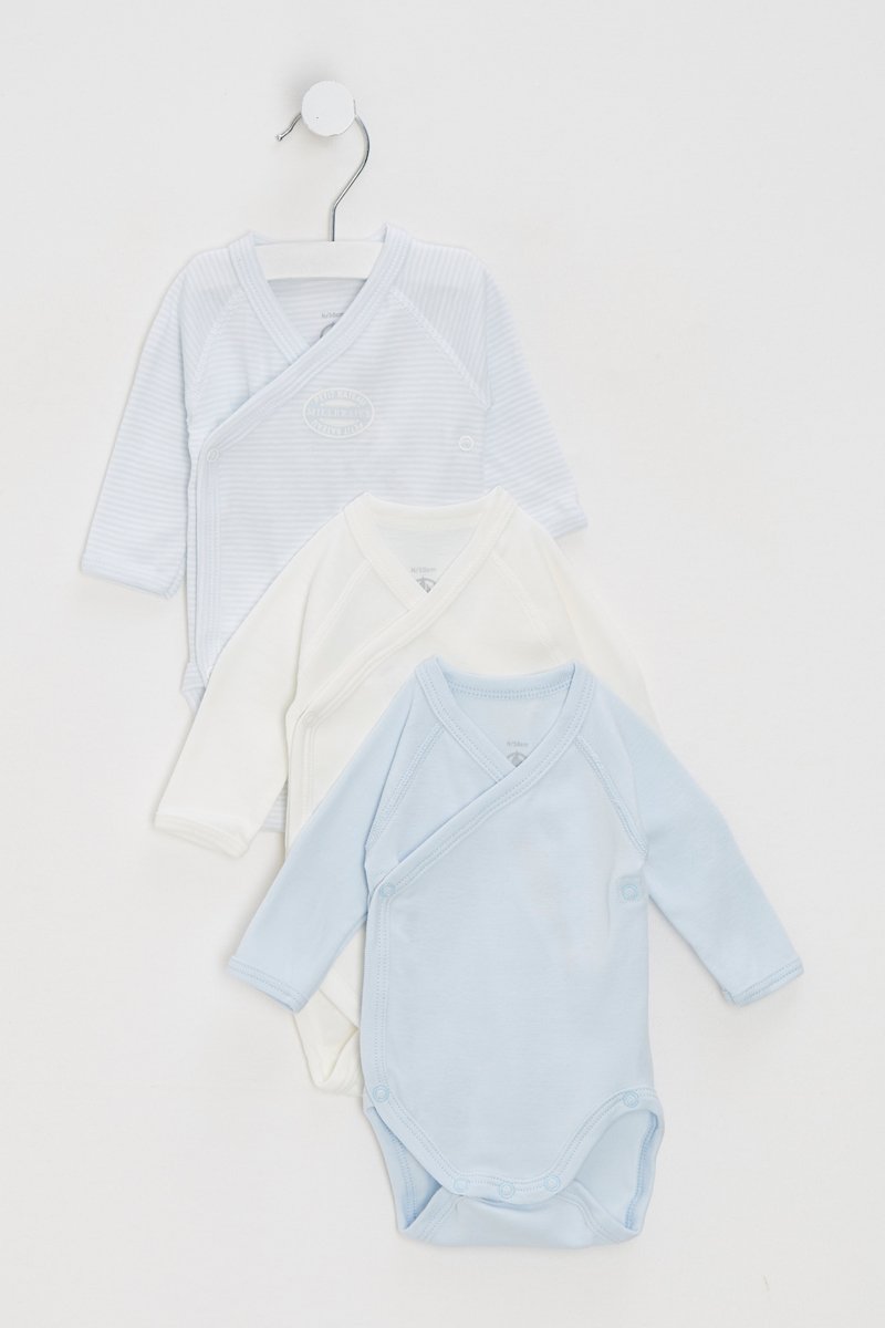 3 body di cui 1 con motivi a righe e logo sul davanti.