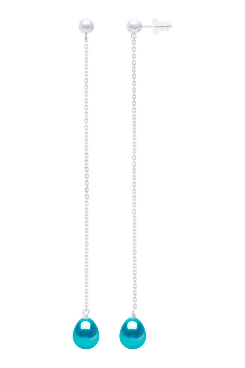 Orecchini pendenti in oro bianco con una perla coltivata d’acqua dolce.