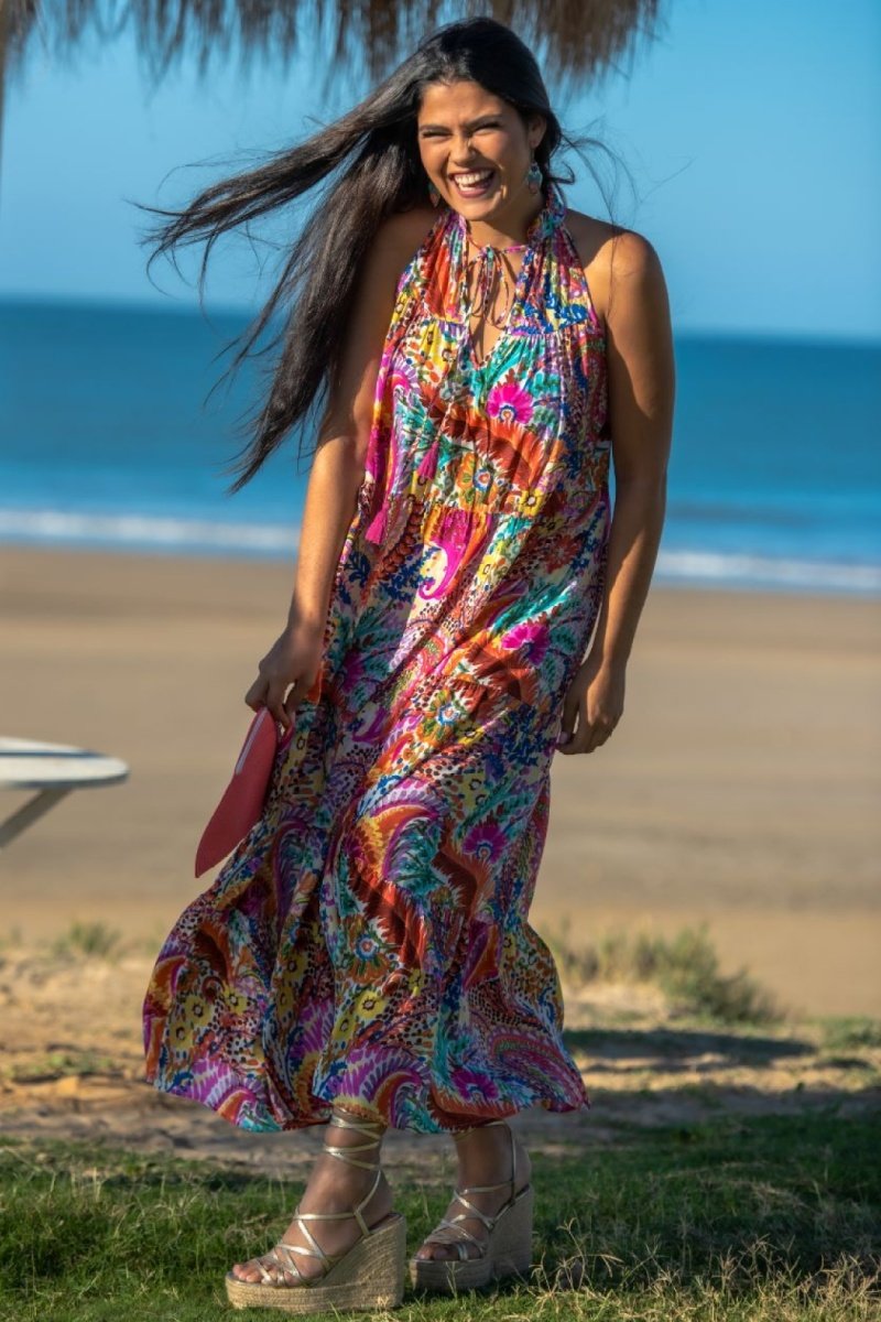 Abito lungo in seta - Multicolore