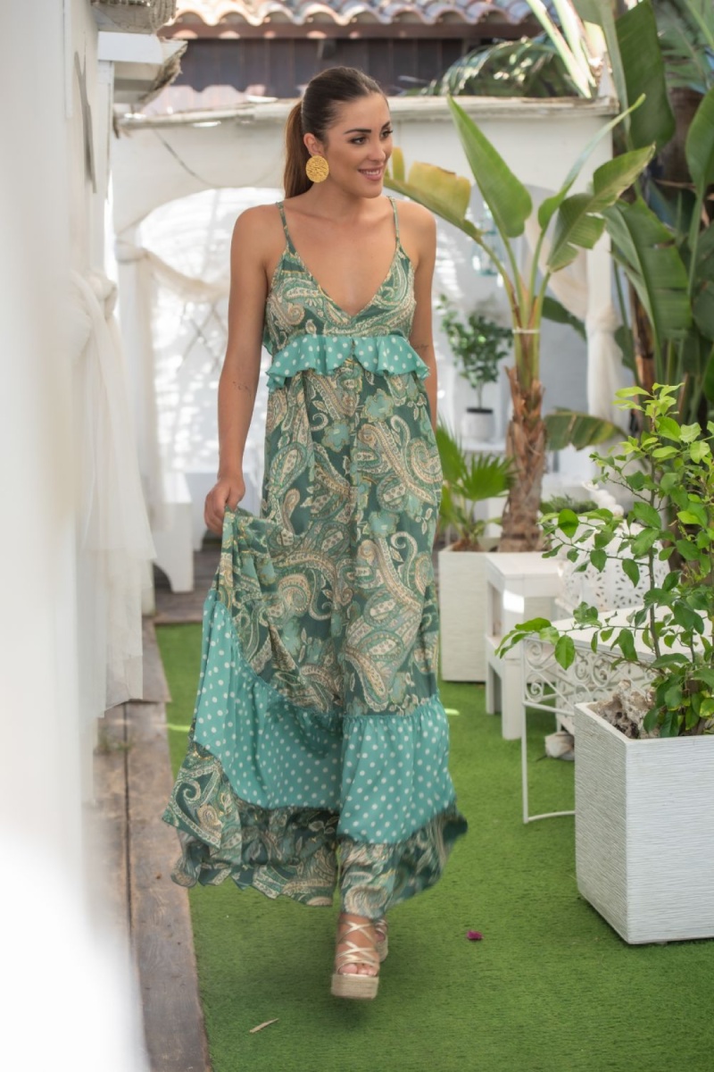 Abito lungo in seta - Verde