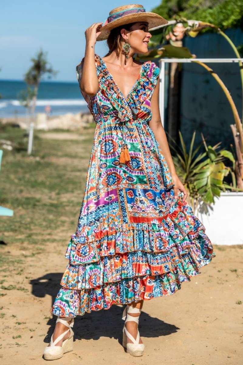 Abito lungo in seta - Multicolore