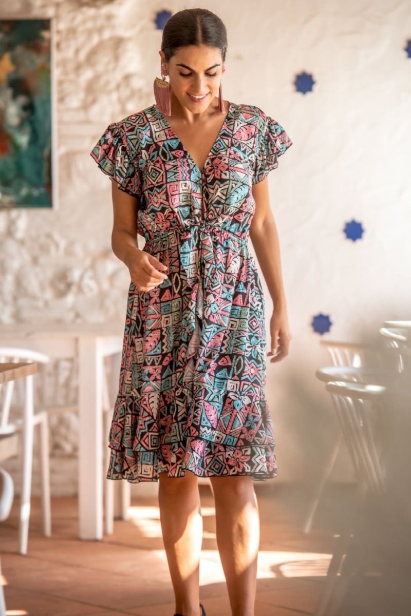 Abito con volant in seta - Multicolore