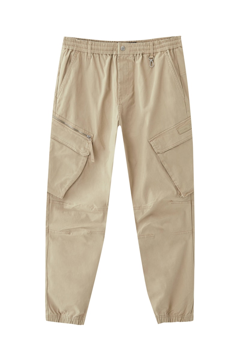 5 tasche di cui 2 con patta a strappo e 1 con cerniera.