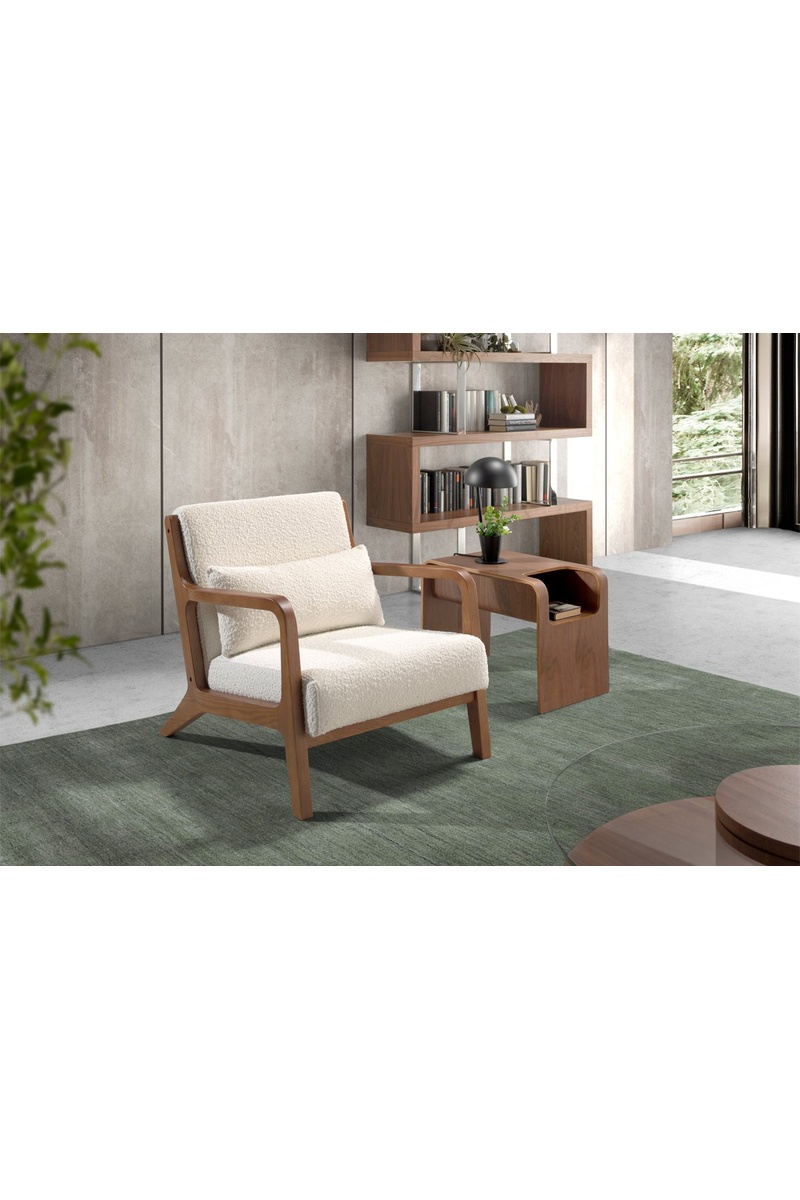 Seduta e schienale in tessuto bouclé.