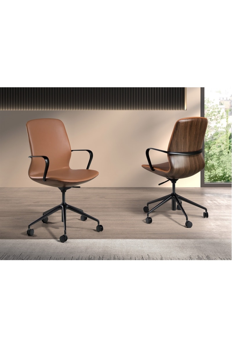 Poltrona da ufficio in noce - 59 X 61 X 94 cm - Rivestimento in similpelle