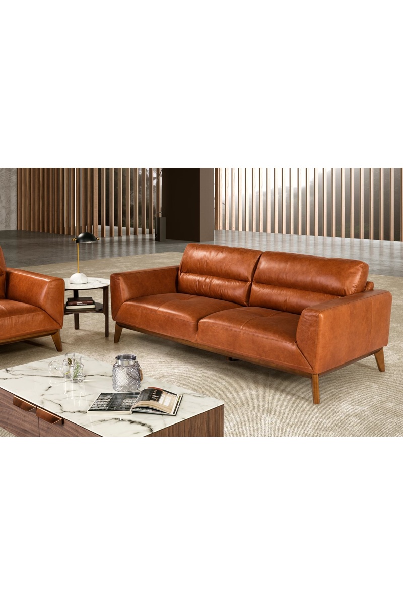 Divano in pelle - Marrone - 3 posti