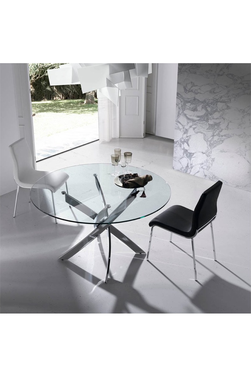 Tavolo da pranzo - Trasparente e cromato - Piano in vetro - 110 x 110 x 75 cm