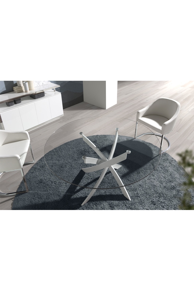 Tavolo da pranzo - Trasparente e bianco - Piano in vetro - 110 x 75 x 110 cm