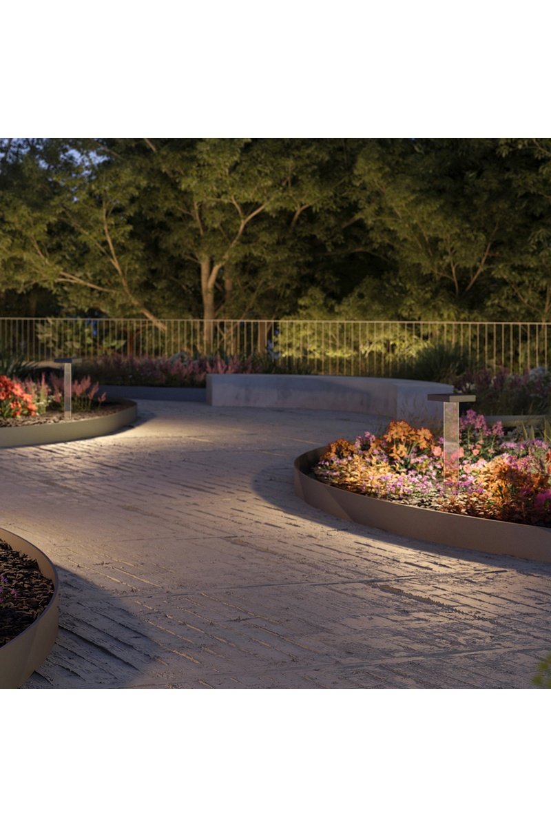 Supporto trasparente che crea un effetto luminoso minimalista, ideale per un'integrazione naturale tra le piante.