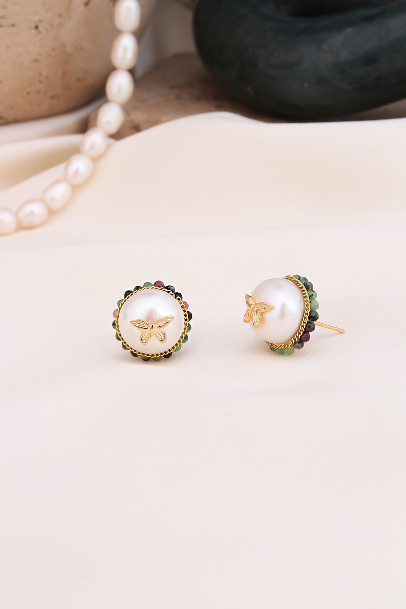 Materiali: ottone, rame, prehniti e perle di imitazione