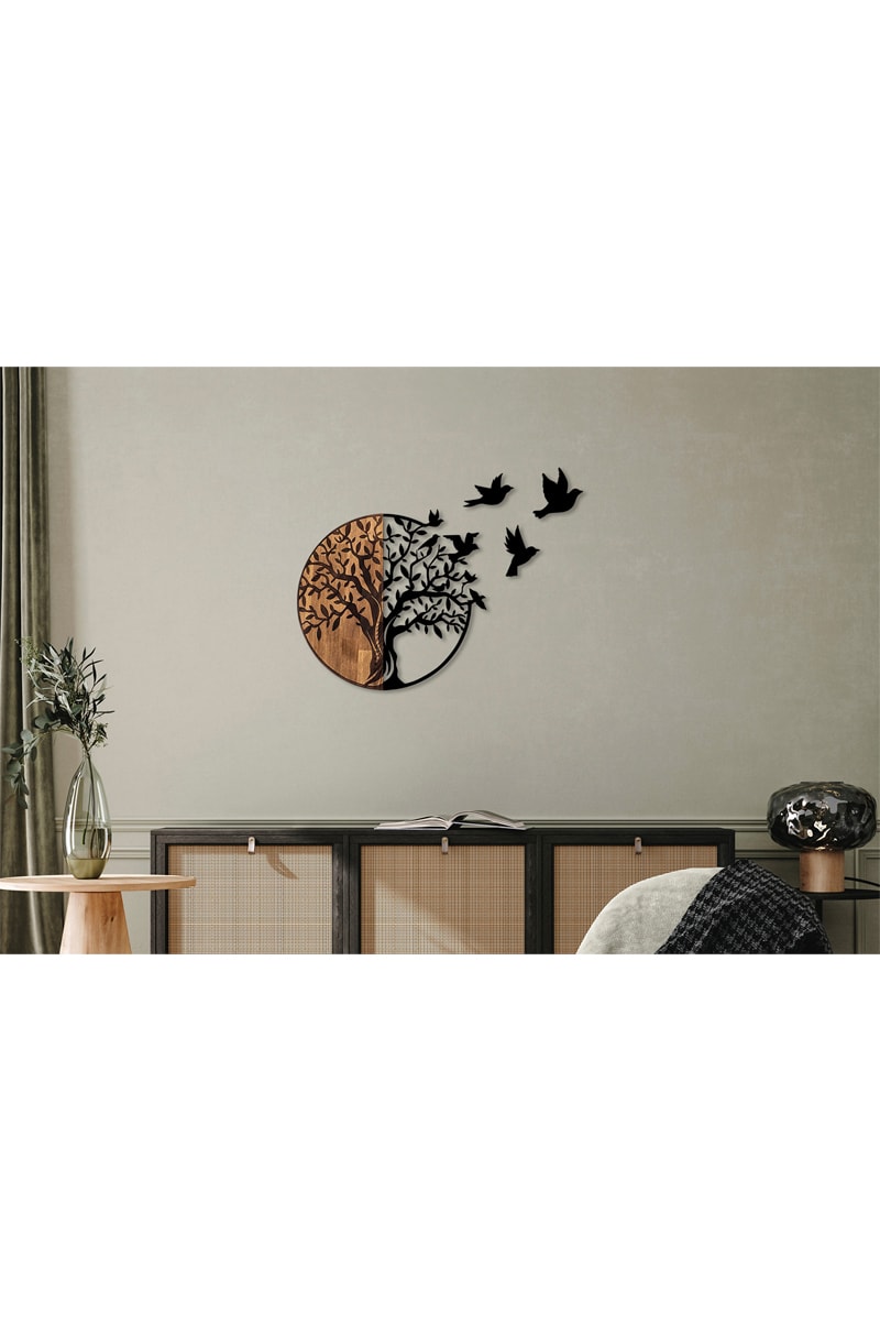 Decorazione da parete in legno - 92 x 3 x 71 cm - Nero e neutro