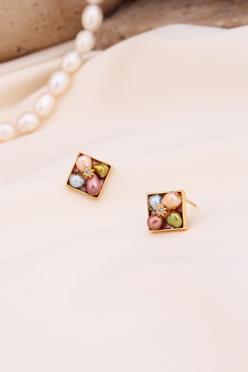 Orecchini con 4 perle di imitazione e cristalli.