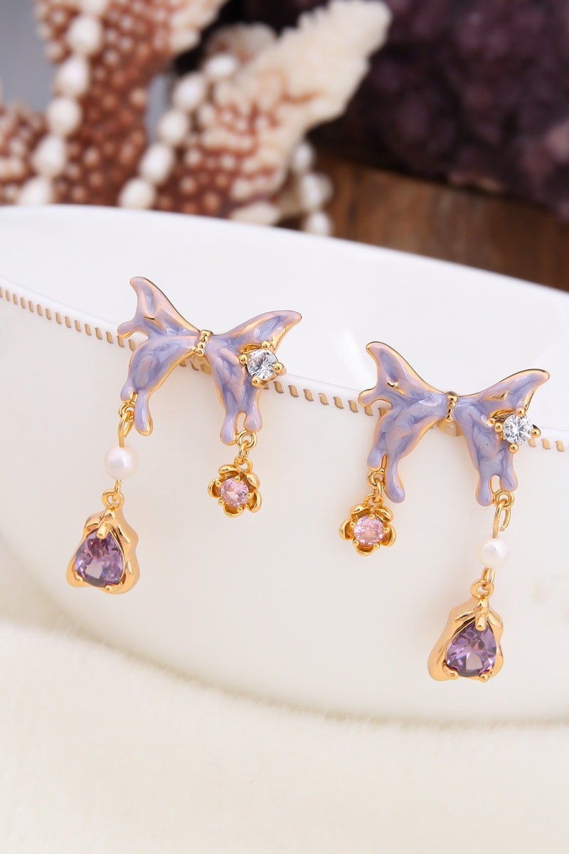 Orecchini pendenti con 3 cristalli e una perla di imitazione.