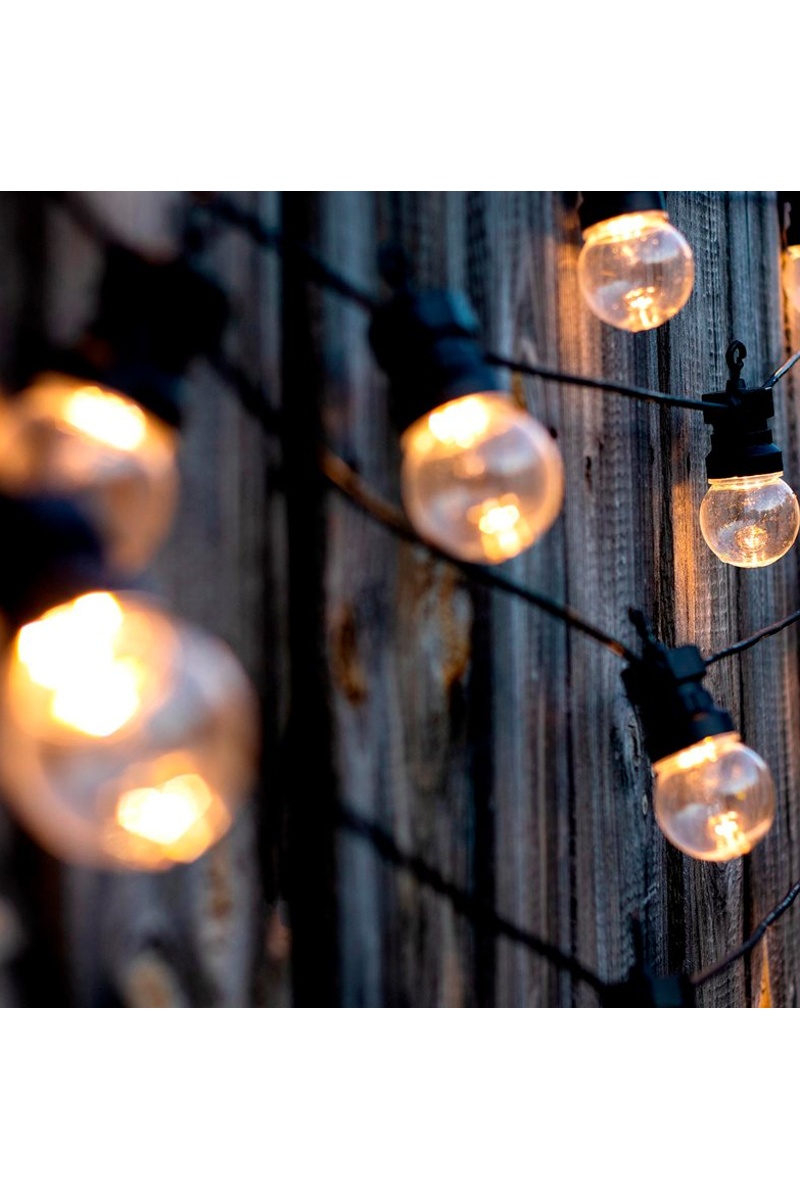 10 lampadine rotonde trasparenti resistenti agli schizzi (IP44) e ai raggo UV.