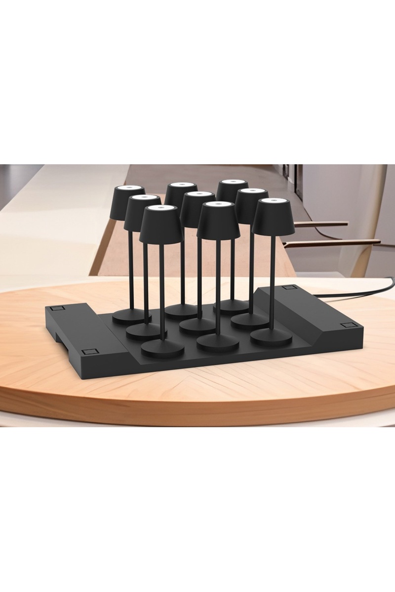 9 Lampade da tavolo EMILY Nero + base di ricarica